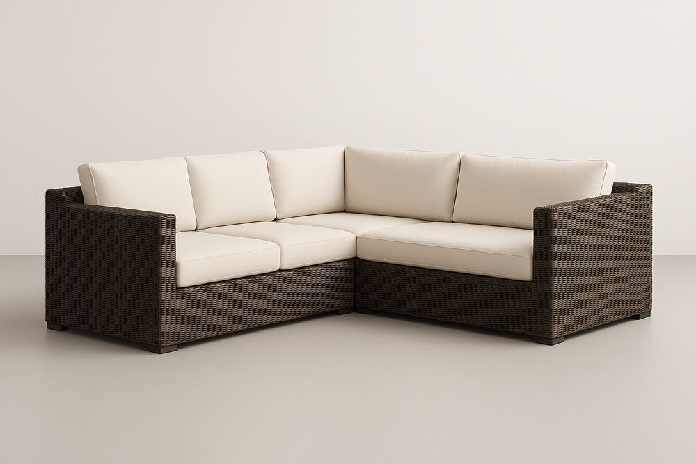 Matériaux : Structure en résine tressée, coussins en tissu polyester avec rembourrage en mousse.